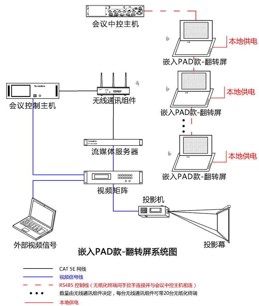 8、可選的Internet接入允許客戶端訪問外網(wǎng)或企業(yè)內(nèi)網(wǎng),可實現(xiàn)多會議室合并,也可異地共享同步無紙化會議。