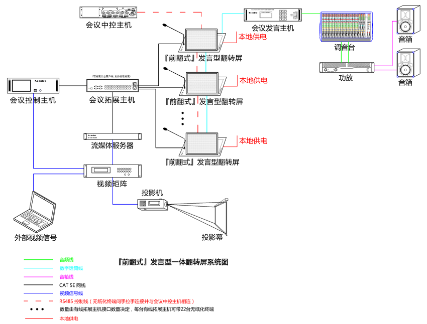 9、發(fā)言系統(tǒng)通過(guò)手拉手連接,通過(guò)專(zhuān)用音頻線(xiàn)連接至發(fā)言會(huì)議主機(jī)。