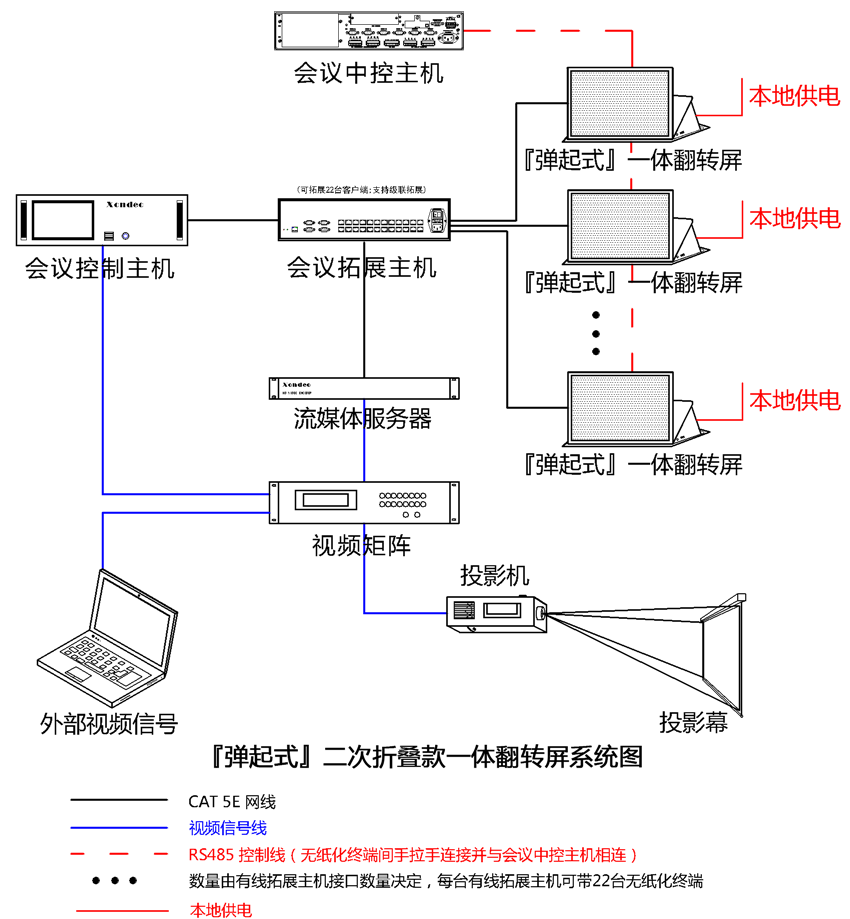1、系統(tǒng)拓?fù)浣Y(jié)構(gòu)簡(jiǎn)單,所有桌牌顯示、同步數(shù)據(jù)、文稿、視頻統(tǒng)一走局域網(wǎng),實(shí)現(xiàn)了純數(shù)字純網(wǎng)線的組網(wǎng)連接,極大降低了施工復(fù)雜度,提高了系統(tǒng)穩(wěn)定性和可維護(hù)性。